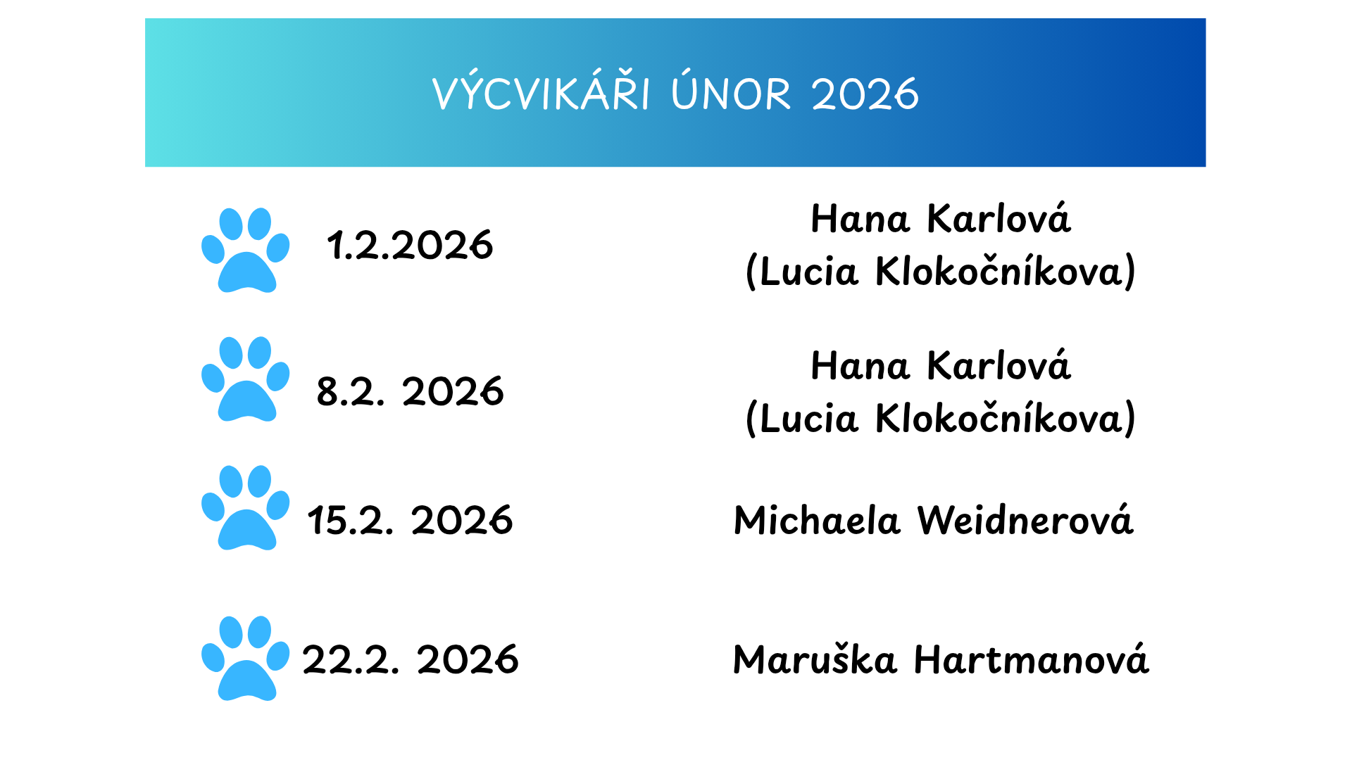 V únoru se na Vás budou těšit tito výcvikáři. V případě změny Vás budeme informovat.