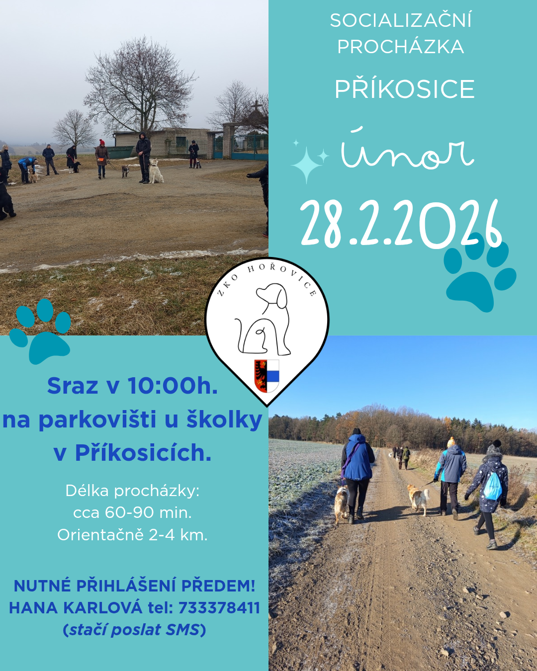 Srdečně vás zveme na únorovou socializační vycházku! I když mě nemoc na chvíli přibrzdila, o společné venčení nepřijdete. Sejdeme se v samém závěru měsíce:Kdy: v sobotu 28. 2. 2026Sraz: v 10:00 hMísto: tradičně na parkovišti u mateřské školy v Příkosicích.
